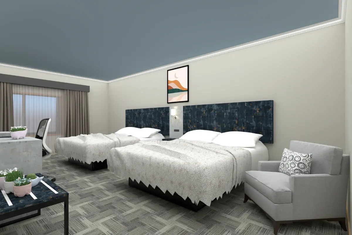 For this independent hotel, we provided a complete custom furniture solution built from the ground up. Without brand guidelines to follow, we collaborated closely with the owner to create a unique look that balanced functionality, comfort, and visual appeal. From design to delivery, every element was crafted to suit the property's individual style and space.